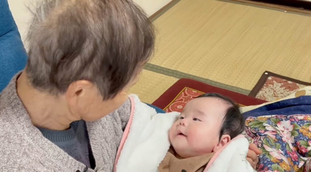 パパの実家での温かい家族の交流と、ひいおばあちゃんとの心温まるふれあいの様子をぜひご覧ください。