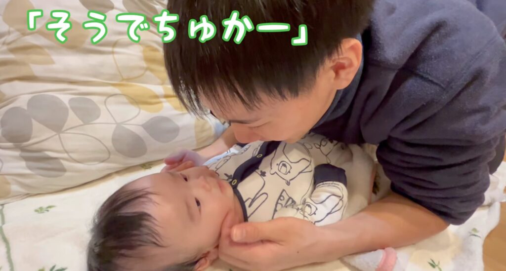 パパを認識したり、お腹のマッサージを受けたり、家族みんなに愛されるみおう君の姿をぜひご覧ください。