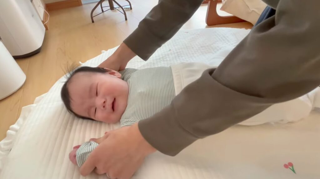 初めてのズボンに戸惑って、泣かせてしまったのは本日2度目のパパです。今日お着替えを担当しましたパパ、おむつも変えました、ミルクもあげました。
